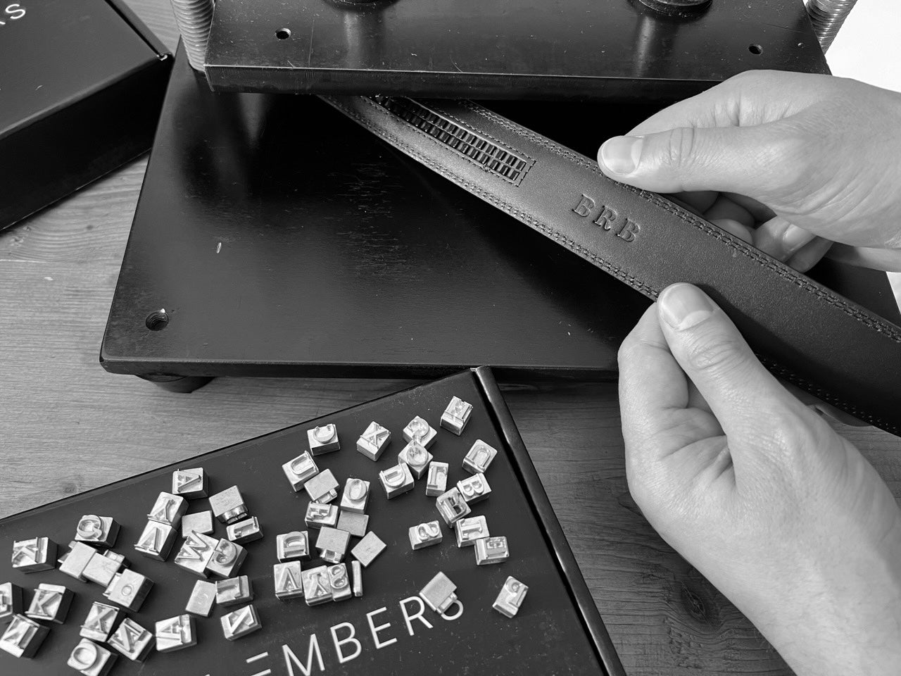 Your belt will be hand-stamped by our leather experts in our London atelier. See the example image below.